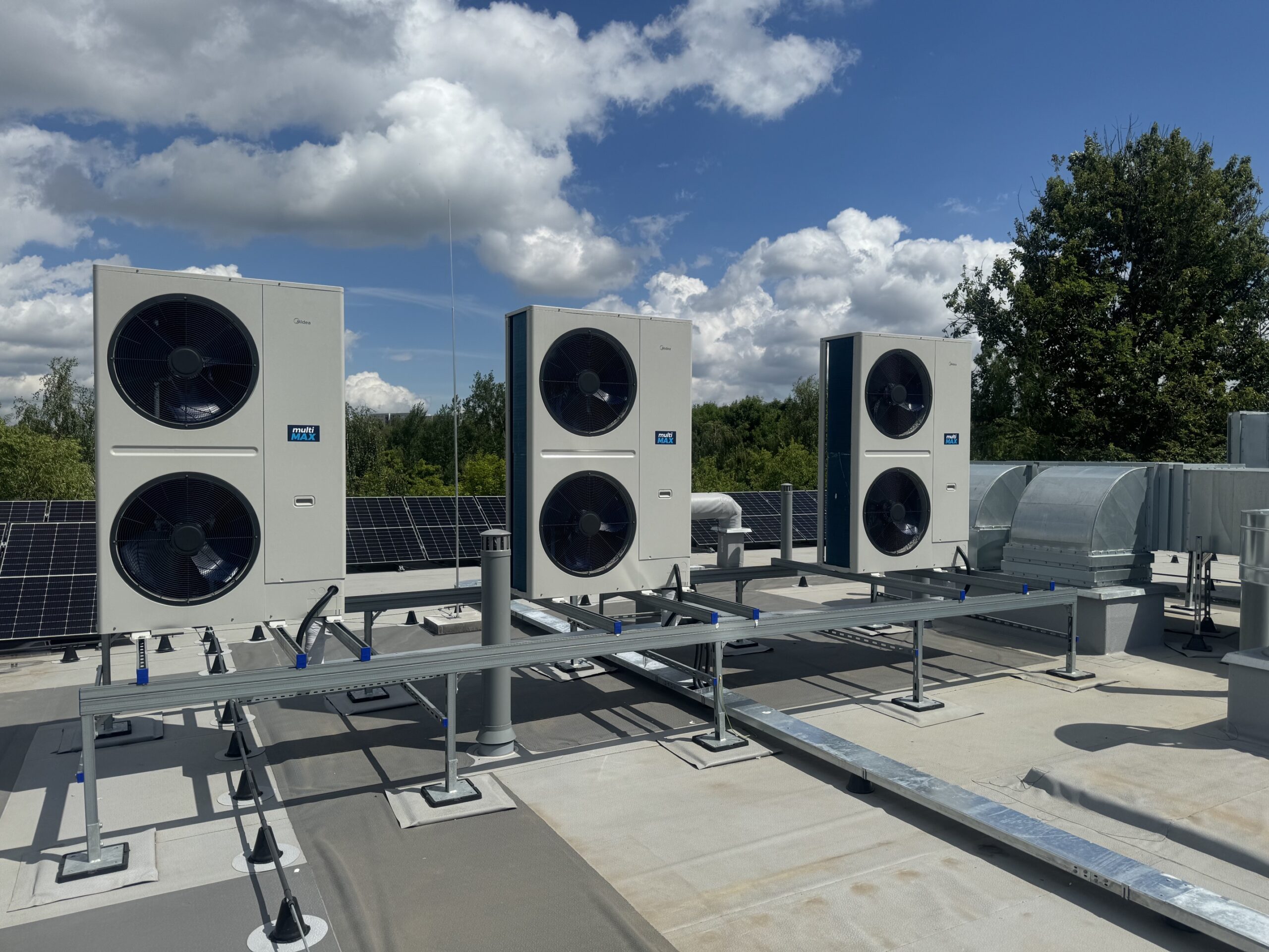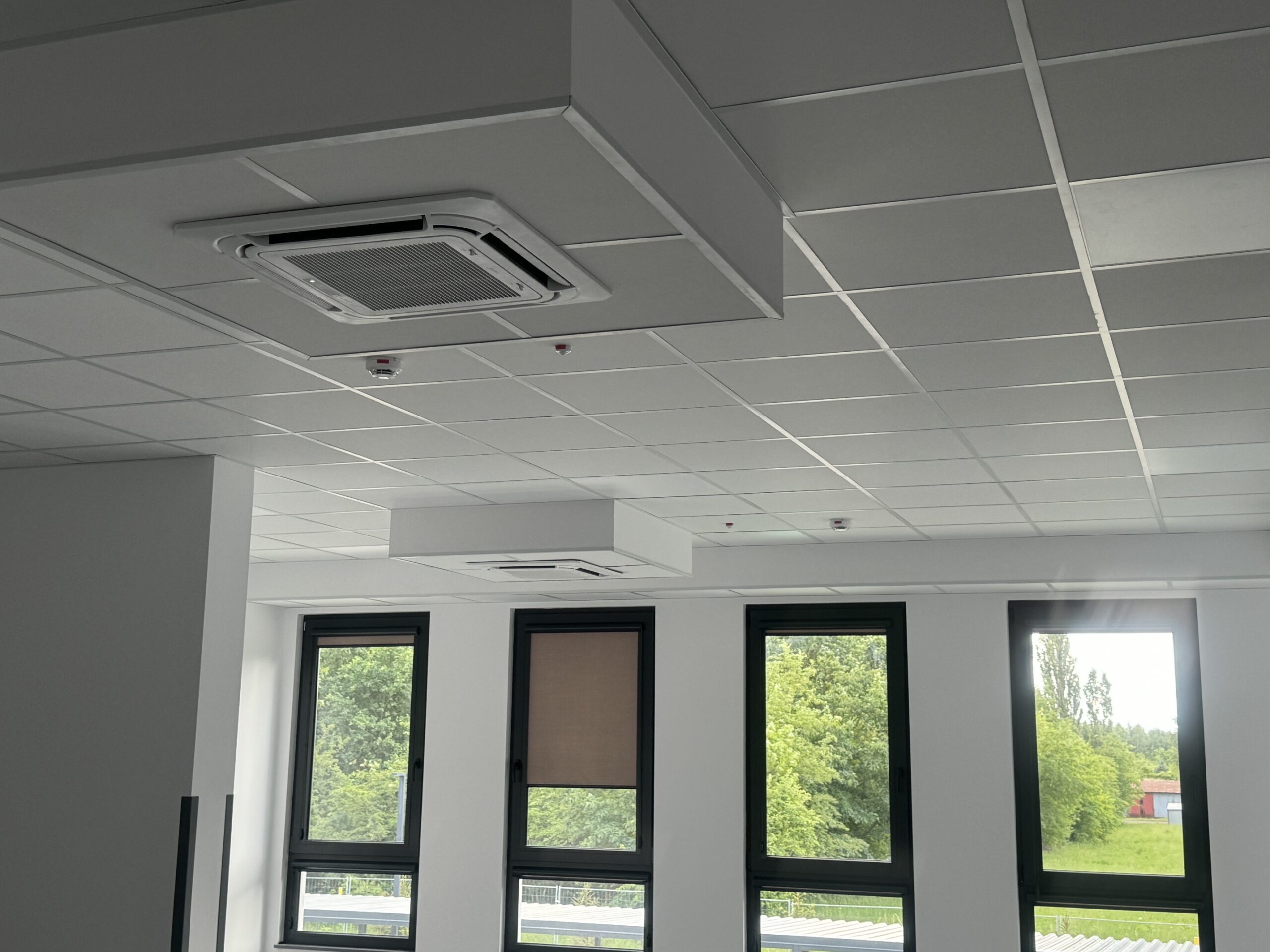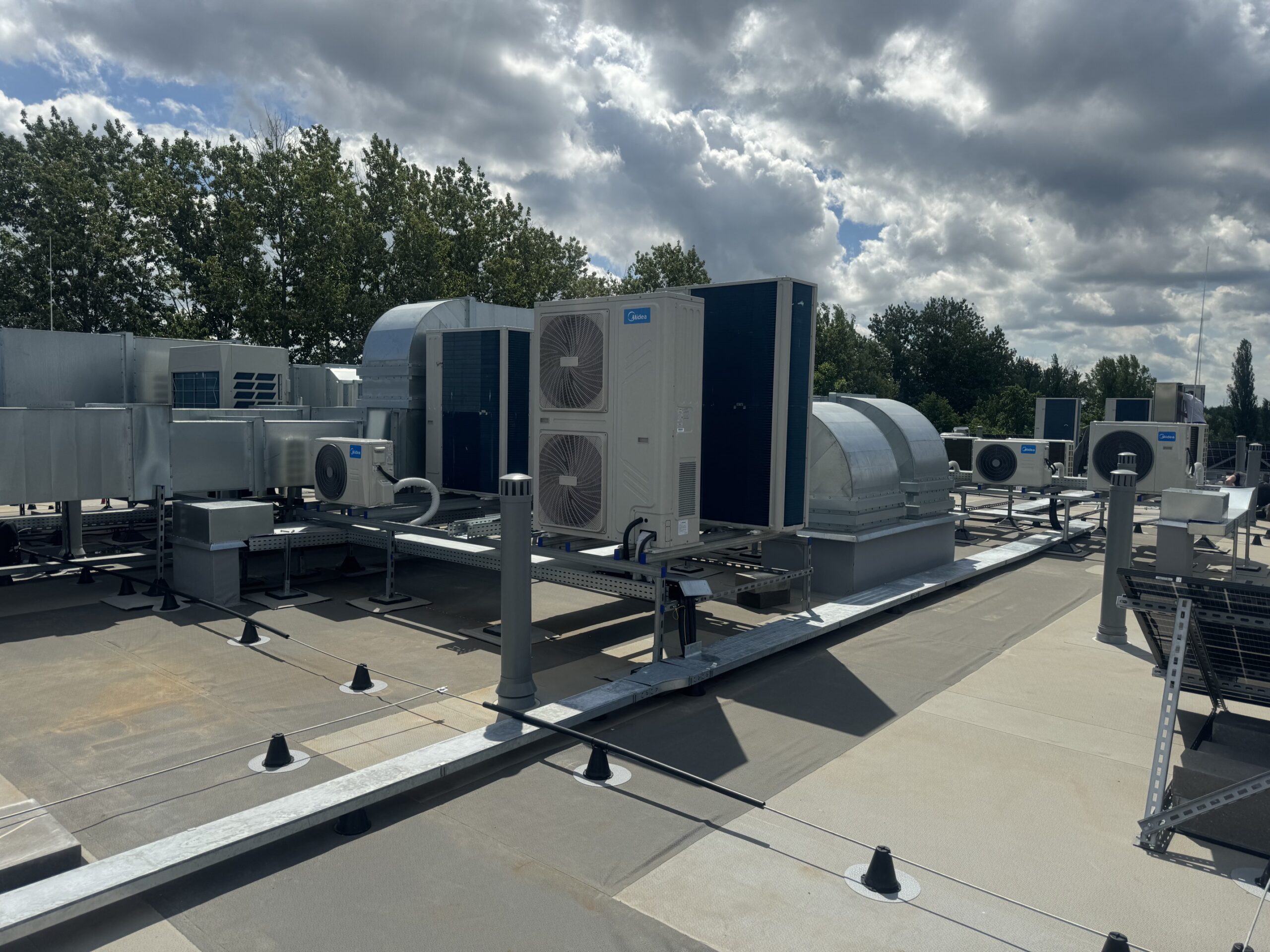 Trzykondygnacyjny budynek użyteczności publicznej, 118 urządzeń ściennych i kasetonowych w układzie VRF, a także klimatyzacja precyzyjna pomieszczeń technicznych.