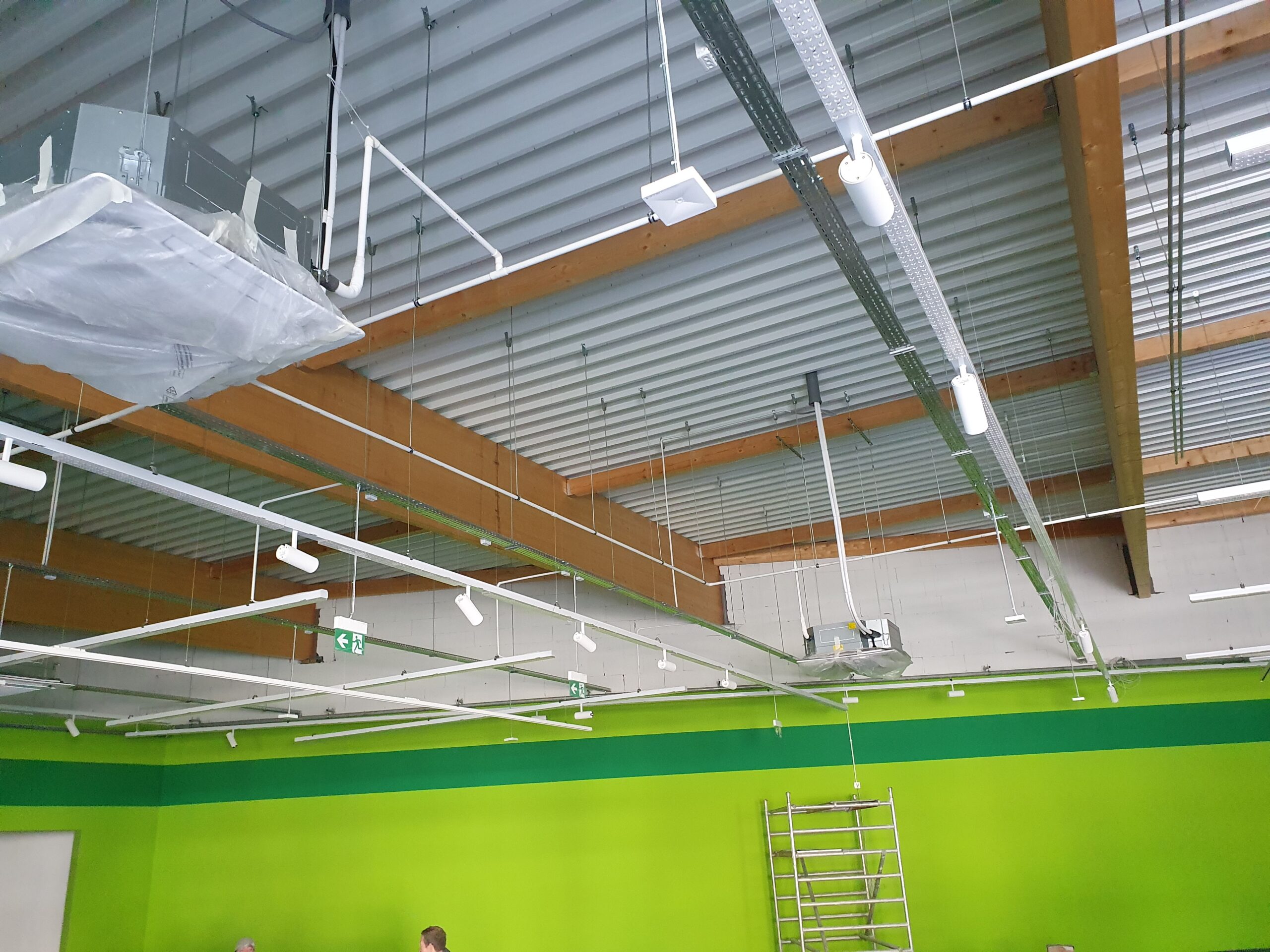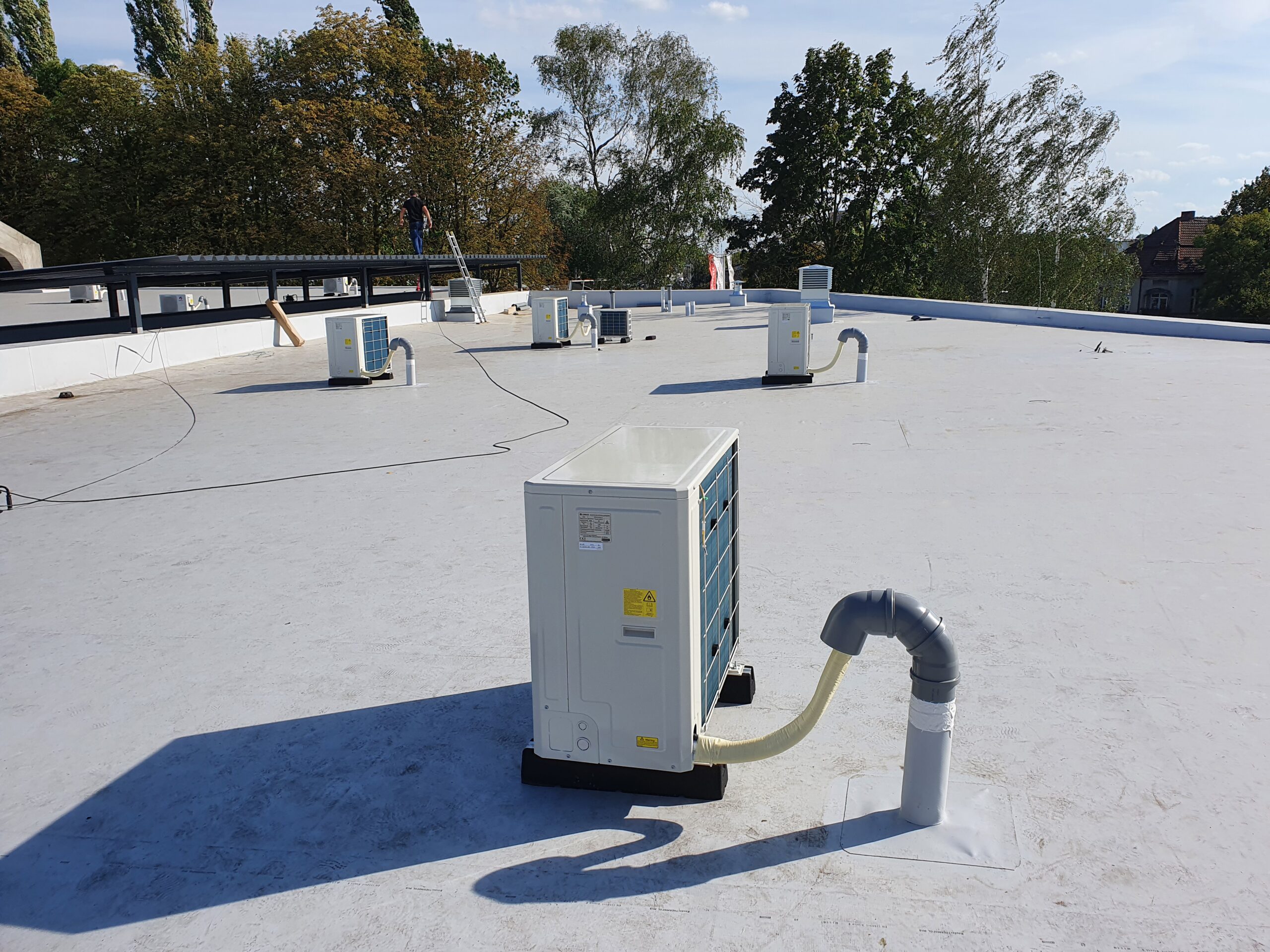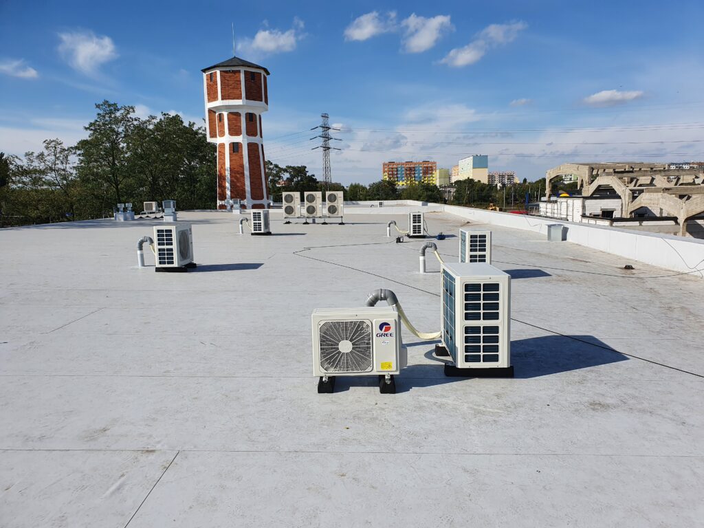 Klimatyzacja lokali handlowych i usługowych Centrum Handlowego. Kilkanaście urządzeń kasetonowych GREE o wydajności od 5kW do 14kW.